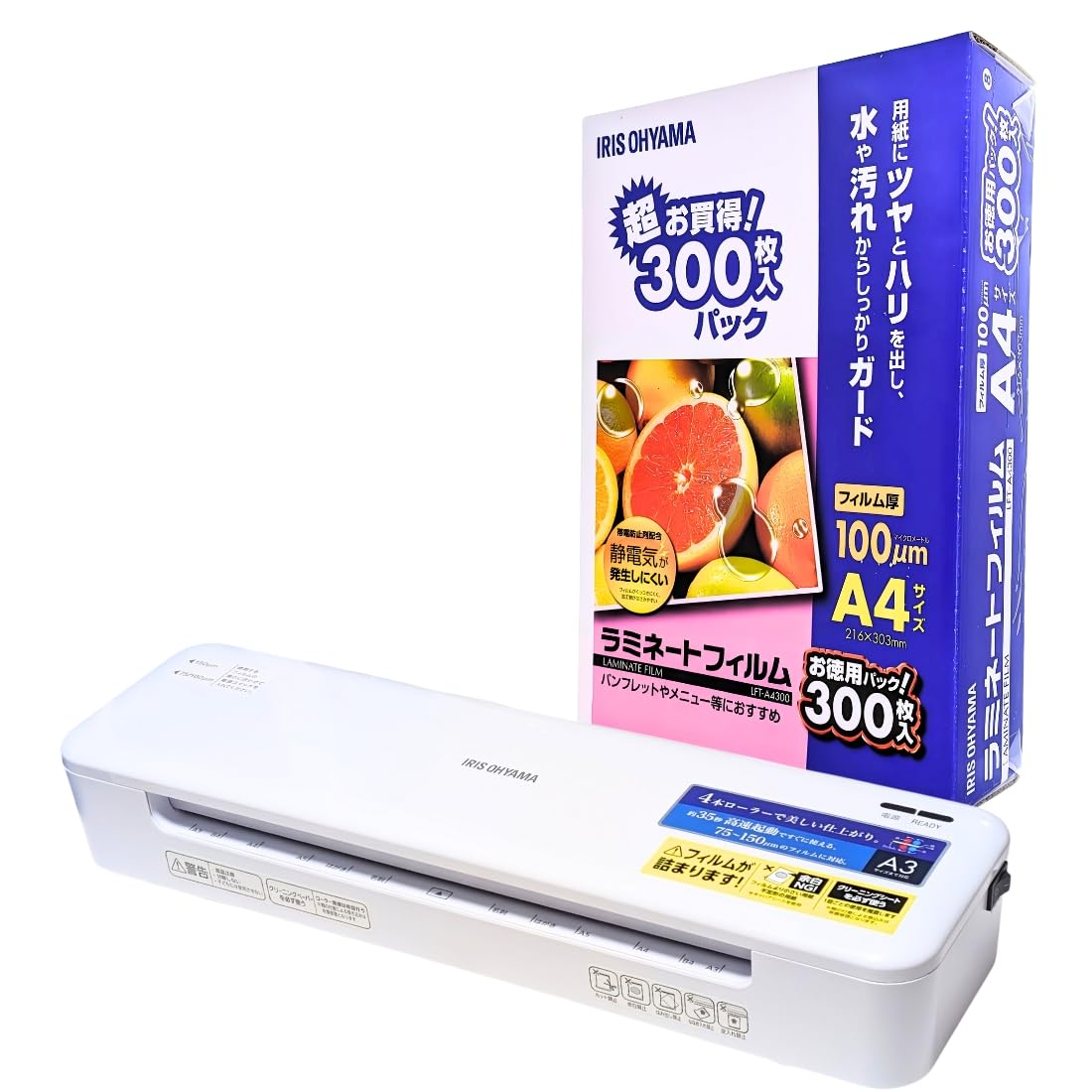アイリスオーヤマ ラミネーター A3対応 高速起動 フッ素加工ローラー 300枚お徳用パック付き