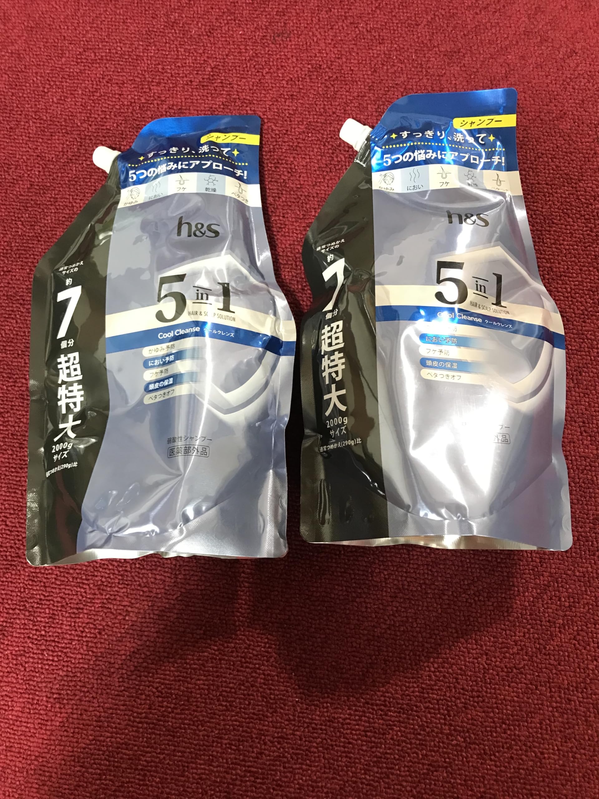 H&s 5in1 クールクレンズシャンプーは、爽快な使用感と優れた洗浄力を兼ね備えた大容量シャンプーです。2000g入り2個セットで、長期間のご使用に最適です。5つの効果を1本に凝縮し、頭皮をすっきりと洗い上げながら、髪にも優しい処方となっています。爽やかな清涼感で、特に夏場の暑い時期に重宝します。泡立ちが良く、適度なコシのある泡で頭皮を優しくマッサージできます。大容量タイプなので、家族での共用にも便利です。毎日のヘアケアに欠かせないアイテムとして、快適な洗髪体験を提供します。コストパフォーマンスに優れた商品で、日々のシャンプータイムを爽快なものにしてくれます。