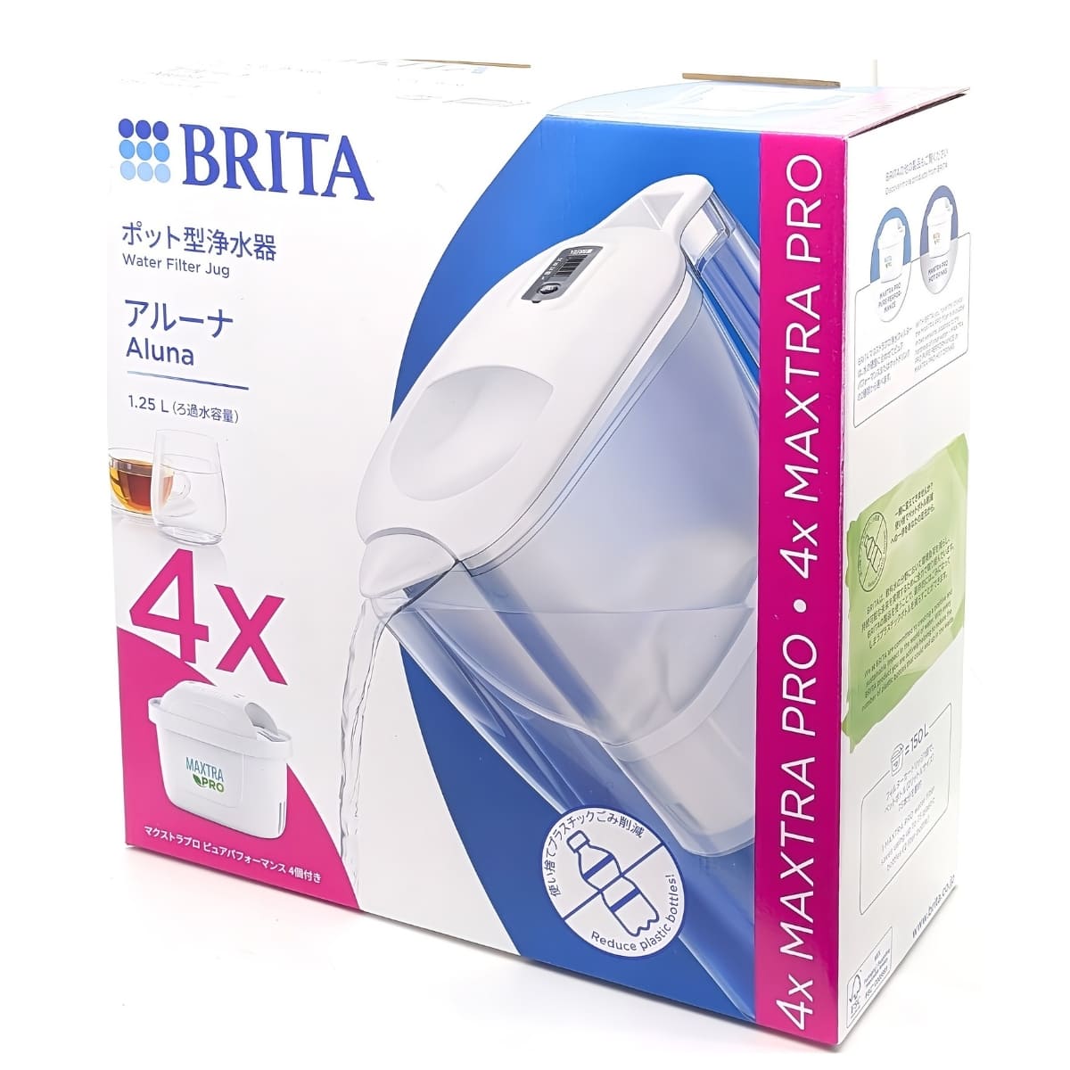 ブリタ ポット型 浄水器 アルーナ 容量2.4L カートリッジ4個付き ろ過水容量1.25L 液晶メモ (交換目安:1日5.3L で4週間) 型番:KBALCW4M すっきりとした味わい サイズ(mm) : 奥行100 横幅249 高さ260mm [並行輸入品]